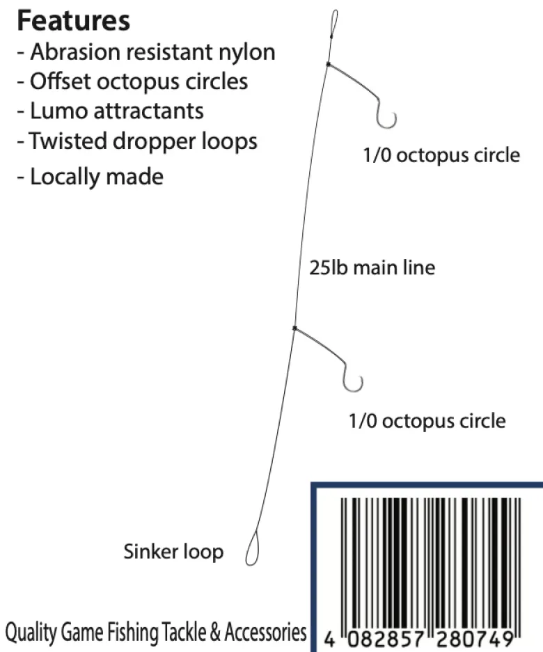 Take the Hassle our of making rigs and give one of our Angler pre made rigs a try.Angler King George Rig Inshore is a locally handmade rig ideal for targeting big whiting. A double dropper with circle hooks. 1 rig per pack