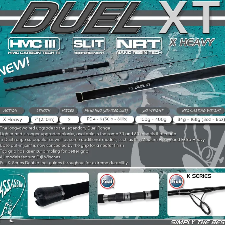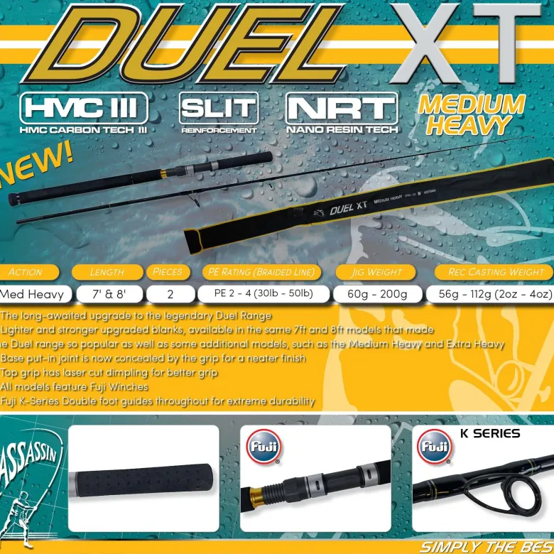 The long-awaited upgrade to the legendary Duel Range, the new Assassin Duel XT series is lighter and stronger with upgraded blanks. Available in the same 7ft and 8ft models that madethe Duel range so popular as well as some additional models, such as the Medium Heavy and Extra Heavy. Two piece butt joint design is now concealed by the grip for a neater finish. The foregrip features laser cut dimpling for better grip.