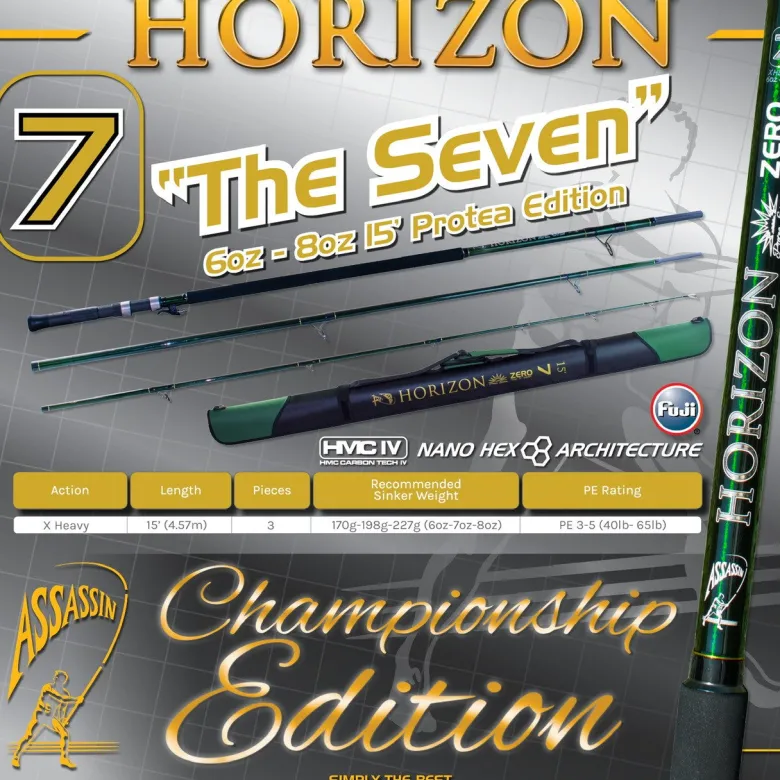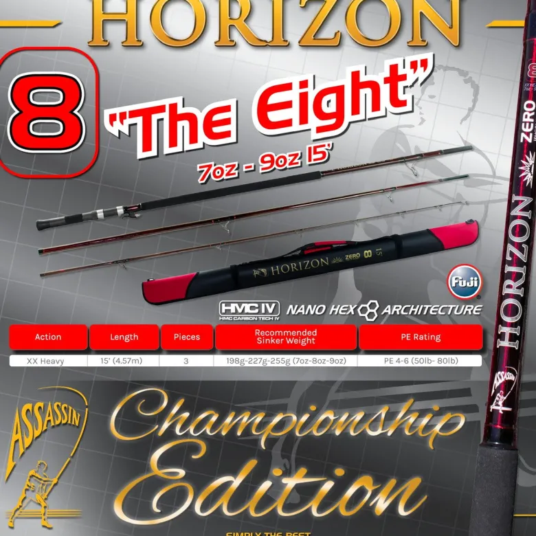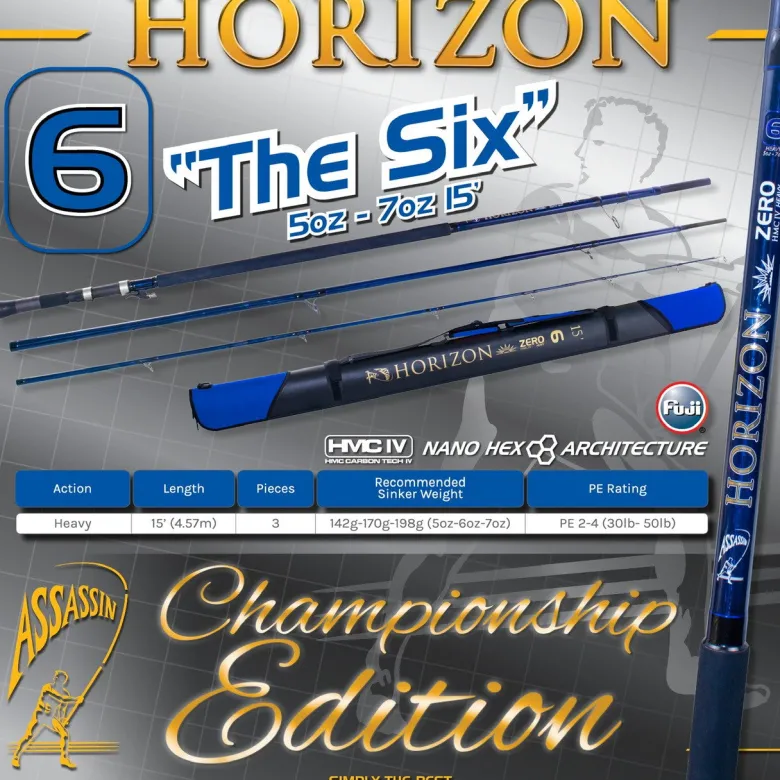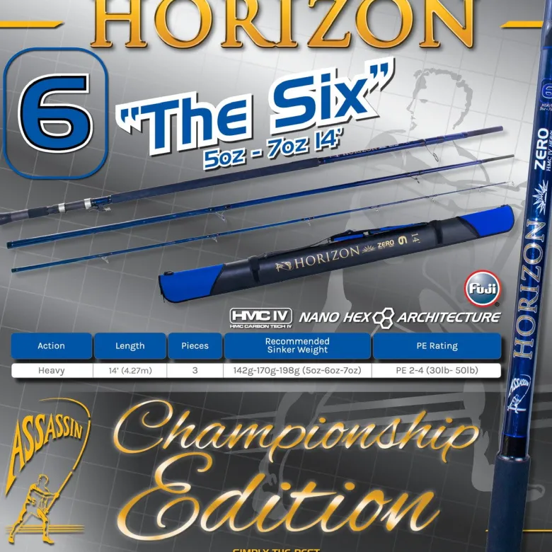 TheAssassin Horizon Zero Championship edition rods are the latest release of premium quality surf rods from leading brand Assassin. These rods are built to the utmost perfection giving the angler the ability to cast further then he has ever cast before.