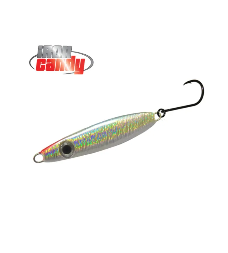 The Iron Candy Bullet features a compact design for long distance casting. It works best with a medium to high speed retrieve, sinks fast and has a strong side-to-side action. It can be fished from the shore or boat as a vertical jig.
