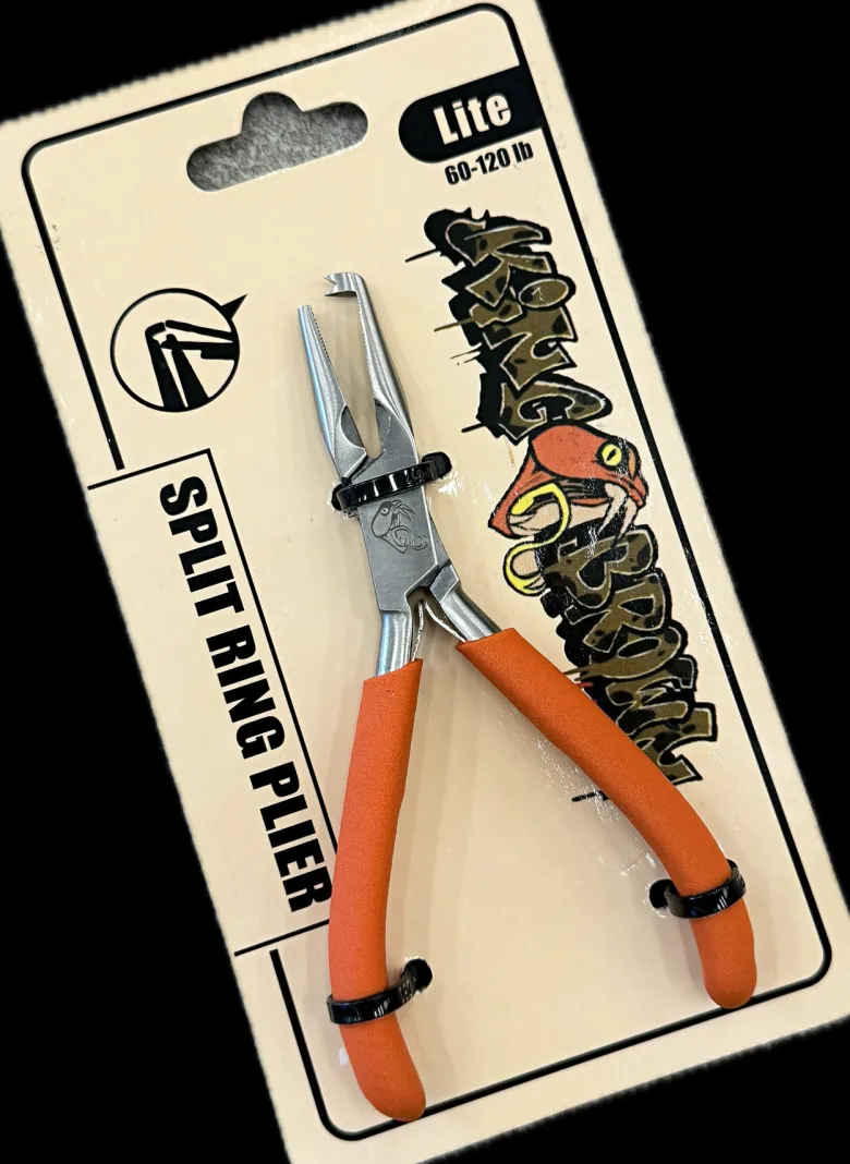 The King Brown Split Ring Plier Lite will open split rings in the range of 60-120lb, idea for jigging and popping applications.