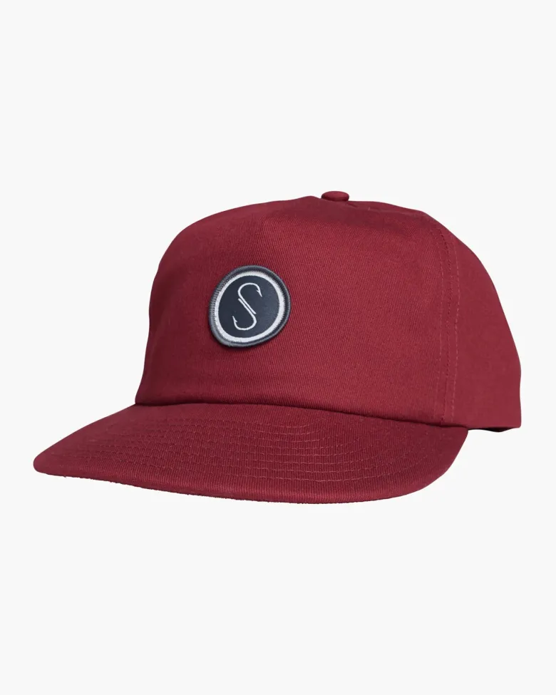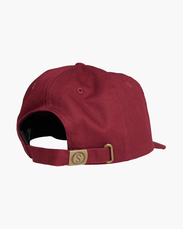 The S Hook 5 Panel Unstructured Cap in Mahogany is an unstructured cap with mid-crown height and a woven damask patch.