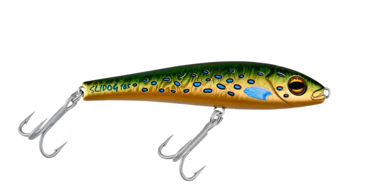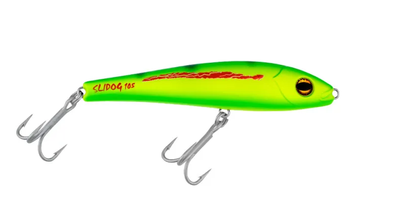 This lure hits the absolute sweet spot! So if you’re into launching a lure out over the horizon and looking for that bone jarring, nerve rattling, knee jerking strike as you rip it back… then look no further! The Slidog 105 is the stickbait that brings versatility to a new level. Work it slow on the surface and wait for that boil. Work it fast with an erratic twitch and wait for your reel to start smoking! Or see what happens when you let it sink… the Slidog 105 has an irresistible shimmy on the way down meaning even demersal species love to to swallow it.