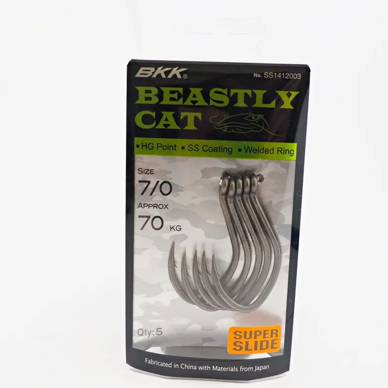 The BKK Beastly Cat Hook is designed with a large gape for targeting big fish with a decent sized bait. These hooks feature a Super Slide coating for added longevity and penetration, they also have a welded eye.