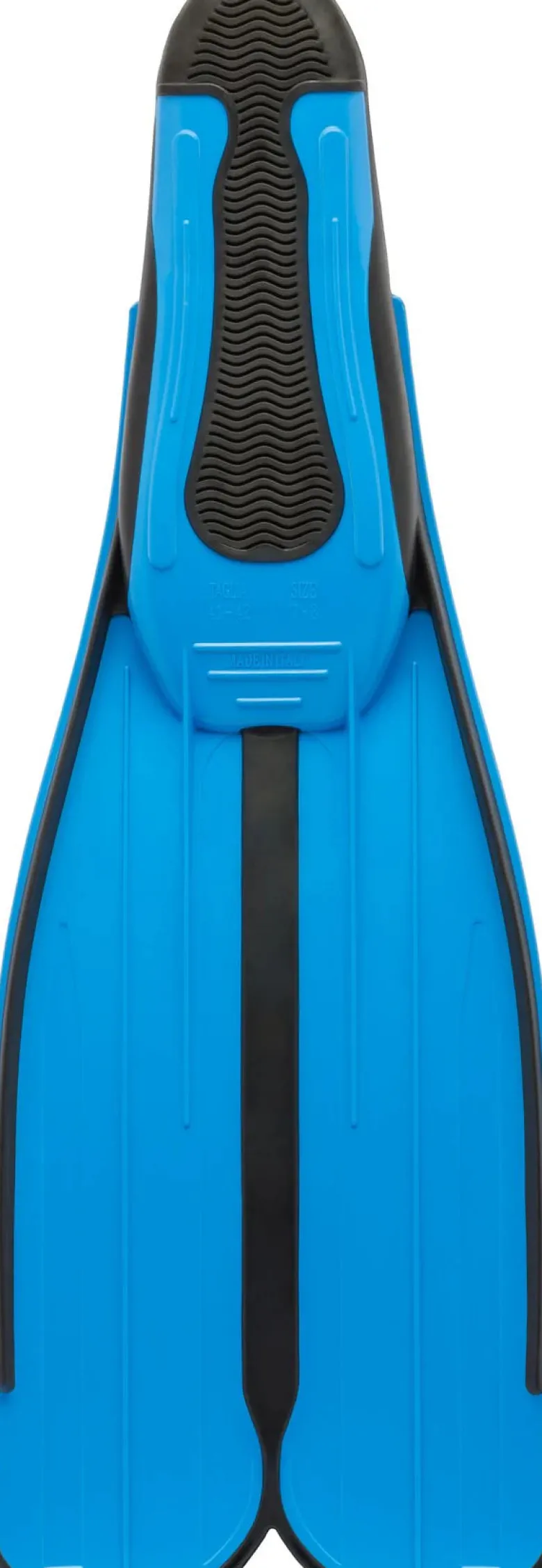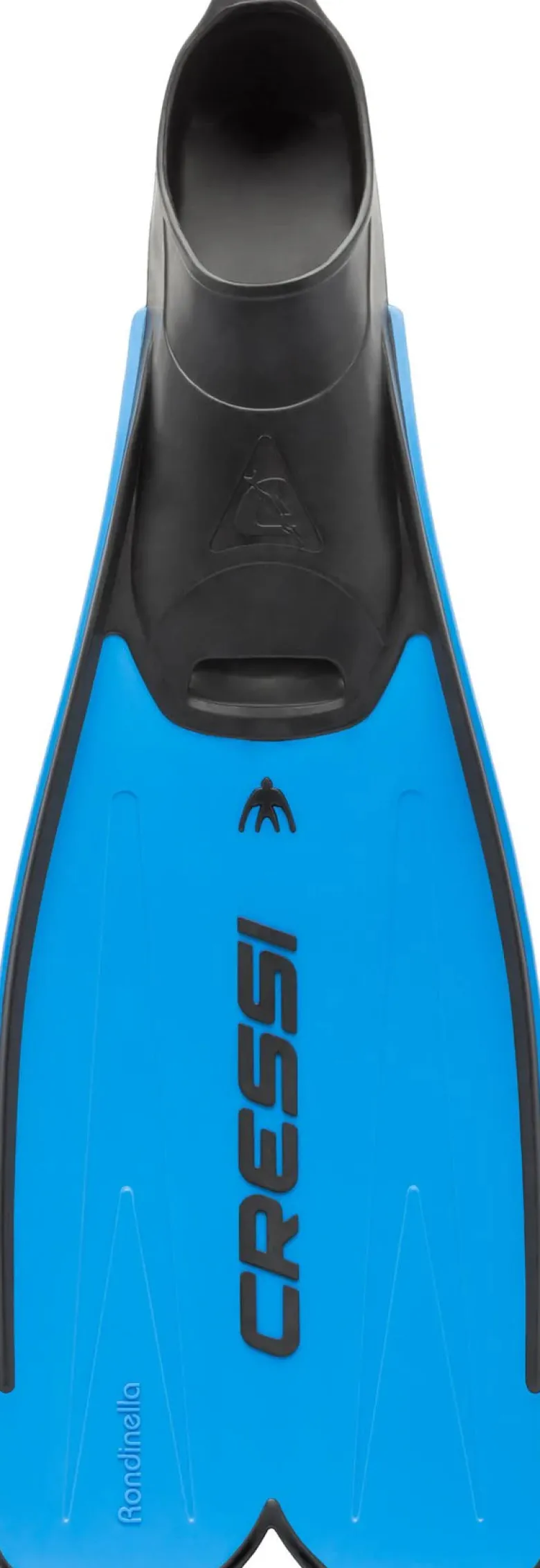 All of cressi’s fifty-year experience has gone into these fins, which are a modern revival of the successful principles of the glorious light blue rubber rondine fins. The blade is made from light and at the same time reactive polypropylene and during moulding is coalesced with a soft, flexible thermo-rubber (elastomer), used for the foot pocket, for the frames and for some inserts. This mix makes the rondinella fins light and powerful: they are easy to use, not too demanding, and perform generously at the same time. The computer-designed foot is enveloping and anatomical, making it easy to put them on and perfect for extended use. Rondinella fins are perfect for snorkelling, free diving, and long swims