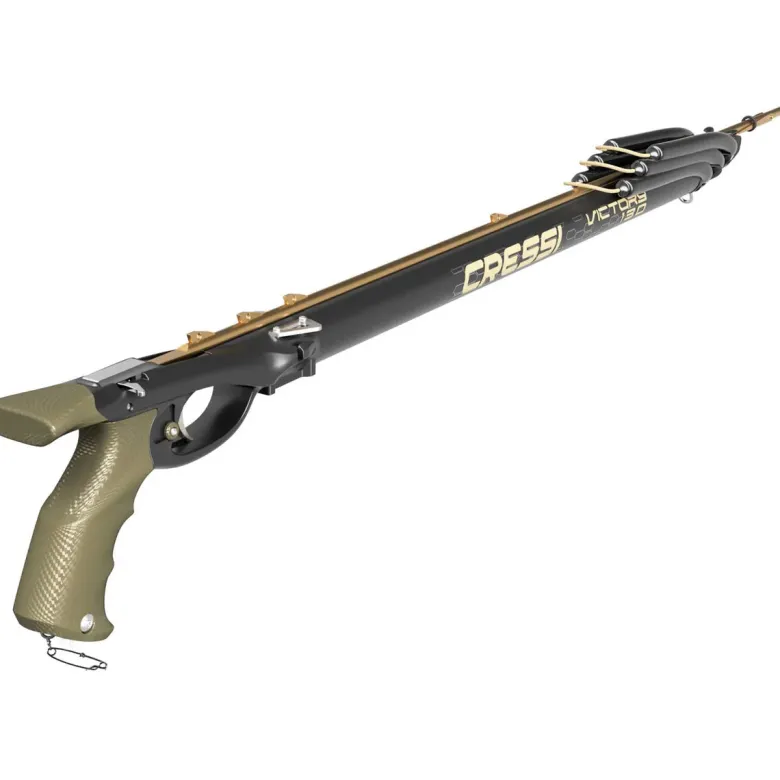 The Victory fishing rifle from Cressi is the ideal choice for fishing enthusiasts looking for a superior experience. With its excellent rebound control and great shooting accuracy, the Victory guarantees more effective and rewarding fishing. What makes the Victory rifle different from others is its 31 mm round barrel; despite its rigidity, it offers exceptional hydrodynamics in all directions. This allows for smooth and fast movements in the water, enabling the angler to move nimbly and easily to reach the best position and hit the target with precision. The result is a durable speargun that offers exceptional performance, enabling the angler to meet challenges in the water with ease and precision. In summary, the Cressi Victory bungee speargun is a high quality option for those wishing to enhance their fishing experience.