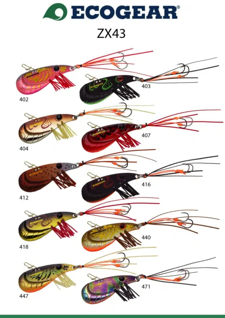 The Ecogear ZX Blade has four selected sizes, 30 mm,35 mm, 40 mm and 43 mm. Each size has been carefully balanced and fine tuned to provide ultimate action and appeal. The varied line-up allows any angler to quickly adapt to changing fishing conditions for effective fishing and continuous catches.