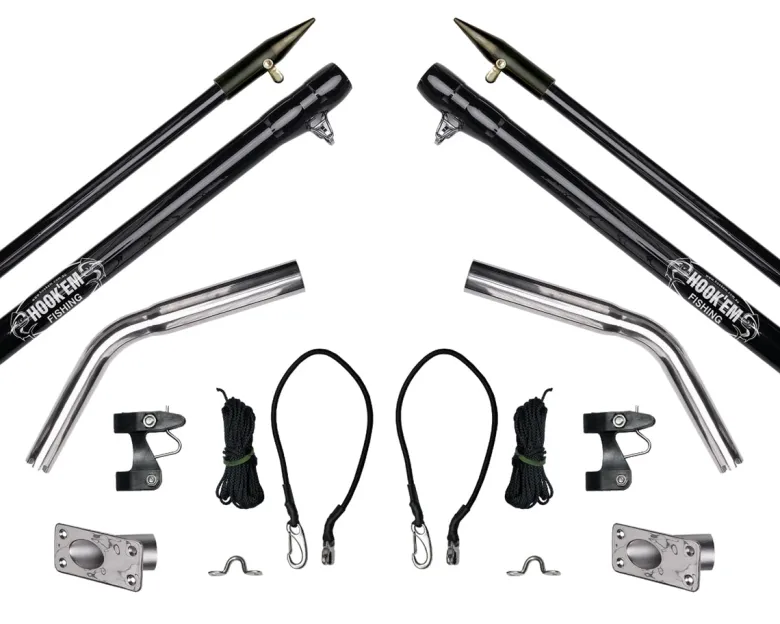 Hookem Boat Outriggers|Flies<Outrigger Set with Rigging Flush Mount 4.5m 3-piece Black