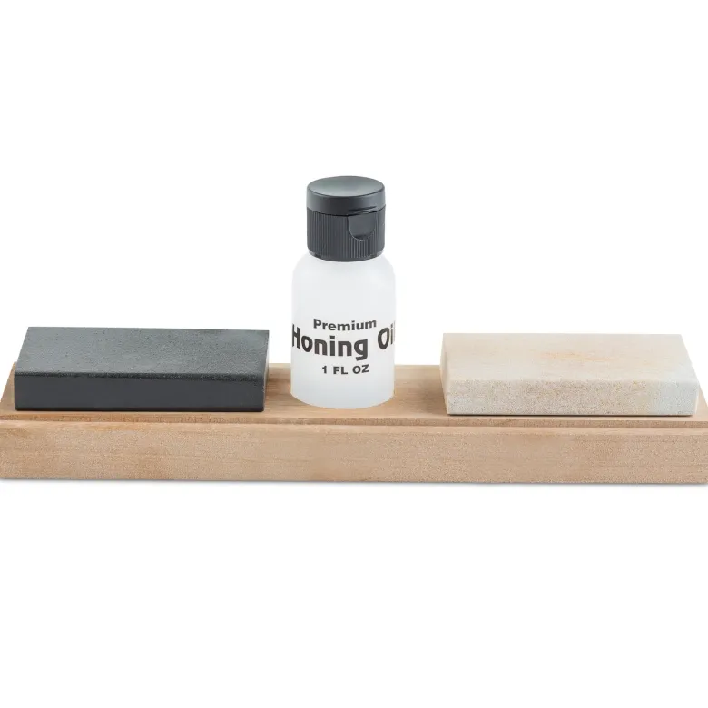 Our 2 Stone Honing Kit is the essential sharpening companion to any outdoorsman or fisherman. Sized for smaller blade applications, the Mounted 2 stone set features our Soft and Hard Black Arkansas Stones, is housed in a custom plastic base and includes a 1oz. bottle of our Premium Honing Oil.