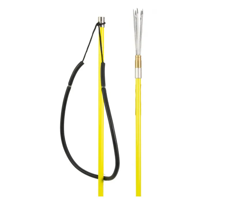 For a cheap start into spearfishing, a hand spear is the way to go (although your range is more limited than when using a speargun). There are fewer components to manage, and loading is fast and easy. This pole spear is made from a smooth, durable fibreglass material which has low friction when travelling through the water for fast and effective shots. The spear is weighted to penetrate fish and get a solid hold on the 5-barb cluster.