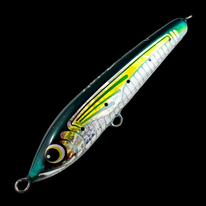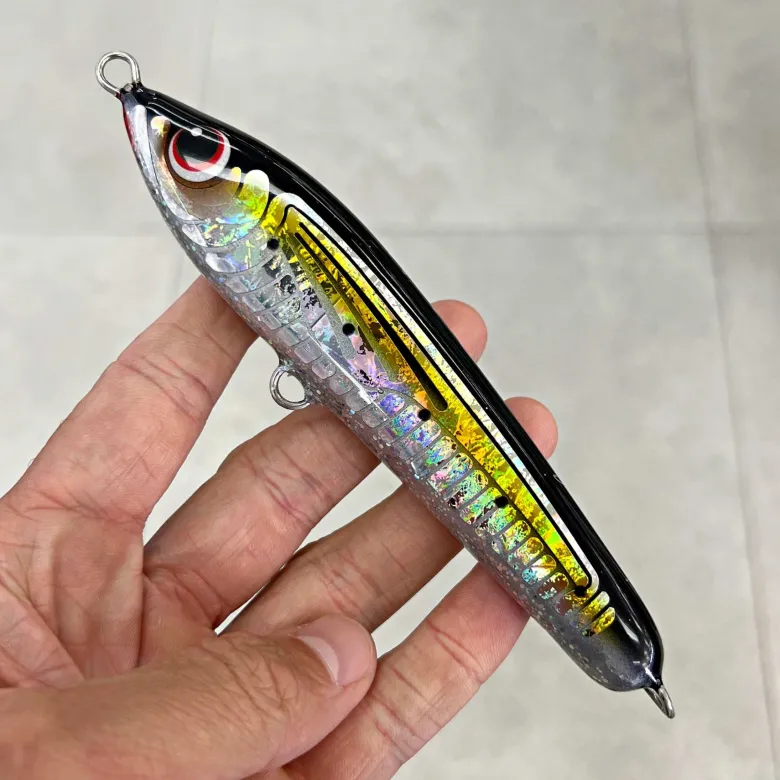 The ASWB F40 Bungarra is a small floating stickbait, weighing only 40 grams and 150mm long it is a must have lure for any keen lure fisherman. It has a very easy to work action and when swept will have a nice lazy roll, a great targetfor those reef predators hunting for an easy meal. As well as the reef the F40 will work great when chasing all your favourite tuna species in the open water. Also big tailor, Australian salmon and small king fish will climb all over this versatile stickbait.