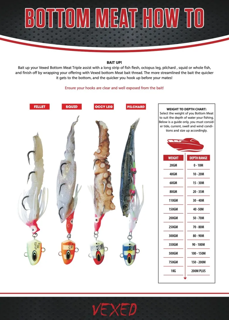 The new Vexed Bottom Meat is the first hybrid jig/bait system of its kind designed for filthy baito’s who are wanting to gently thumb themselves into the world of artificial.