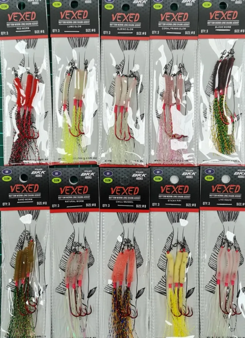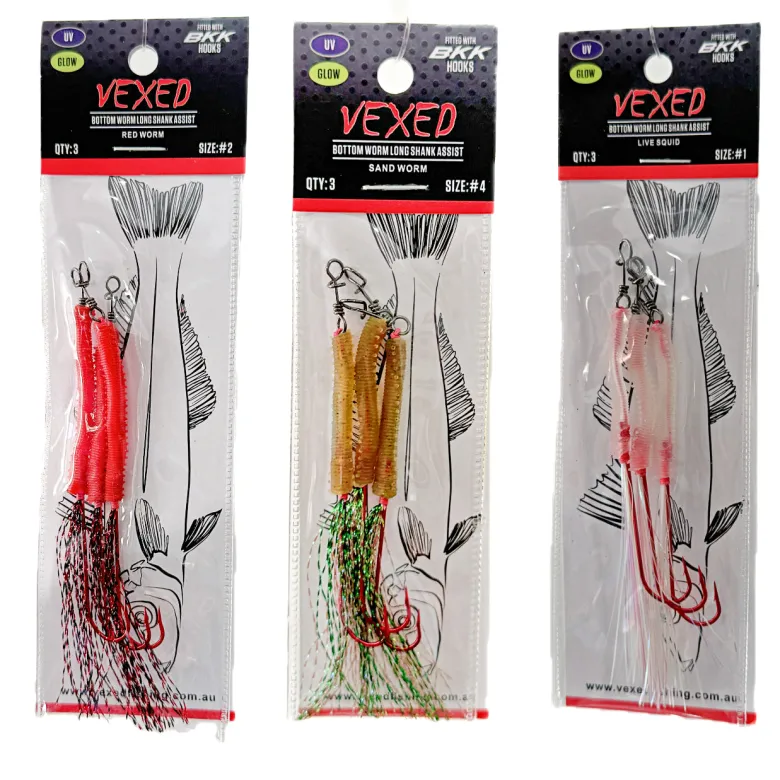 The Vexed “Bottom Worm Longshank Assist” might be a little bit different to anything you have seen before, but that’s because VEXED has only just created this new concept off the back of its extremely successful big brother “The Vexed Bottom Meat”. Bottom Meat revolutionised reef fishing for demersal species by presenting more attractive baits and by being able to deploy baits deeper and more efficiently using less weight on lighter slow pitch jigging outfits that modern anglers prefer to use.
