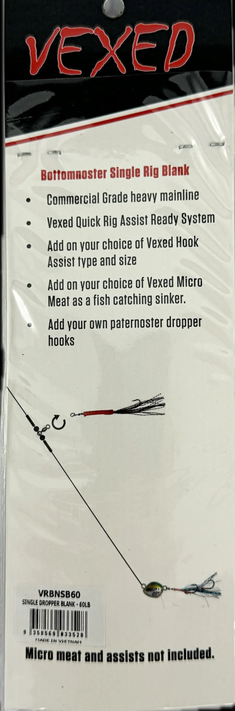The Vexed Singlenoster Blank Rig is designed to be used in conjunction with the Vexed Micro Meat, Vexed Bottom Worm and Vexed Bottom Meat Junior hybrid jigs. This rig allows you to fully customise the rig with your favourite Vexed Bottom Worm hooks. Simply twist on your choice of assist on this quick assist ready system.